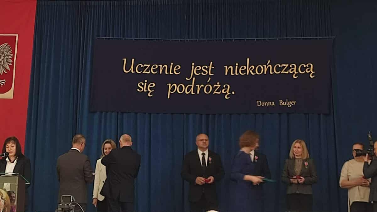 Z wielką dumą i satysfakcją informujemy że nauczyciele ze Szkół z terenu Gminy Kamień zostali odznaczeni Medalami Komisji Edukacji Narodowej przez Kuratora Lubelskiego Tomasza Szabłowskiego podczas obchodów „Dnia Nauczyciela” w Krasnymstawie. Medale otrzymali: – Pani Izabela Głowacka-Dżaman dyrektor Szkoły Podstawowej w Strachosławiu; – Pani Monika Sobczyk dyrektor Szkoły Podstawowej w Czerniejowie; – Pani Teresa Wawryniuk nauczyciel edukacji wczesnoszkolnej Szkoły Podstawowej w Strachosławiu. Medal Komisji Edukacji Narodowej jest najwyższym odznaczeniem resortowym w dziedzinie oświaty. Ci wyróżnieni nauczyciele są dowodem uznania dla ich profesjonalizmu i wkładu pracy na rzecz uczniów i całej społeczności szkolnej.