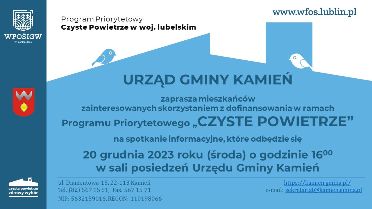 • Spotkanie informacyjne „Czyste Powietrze” w dniu 20.12.2023 r.