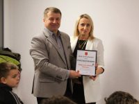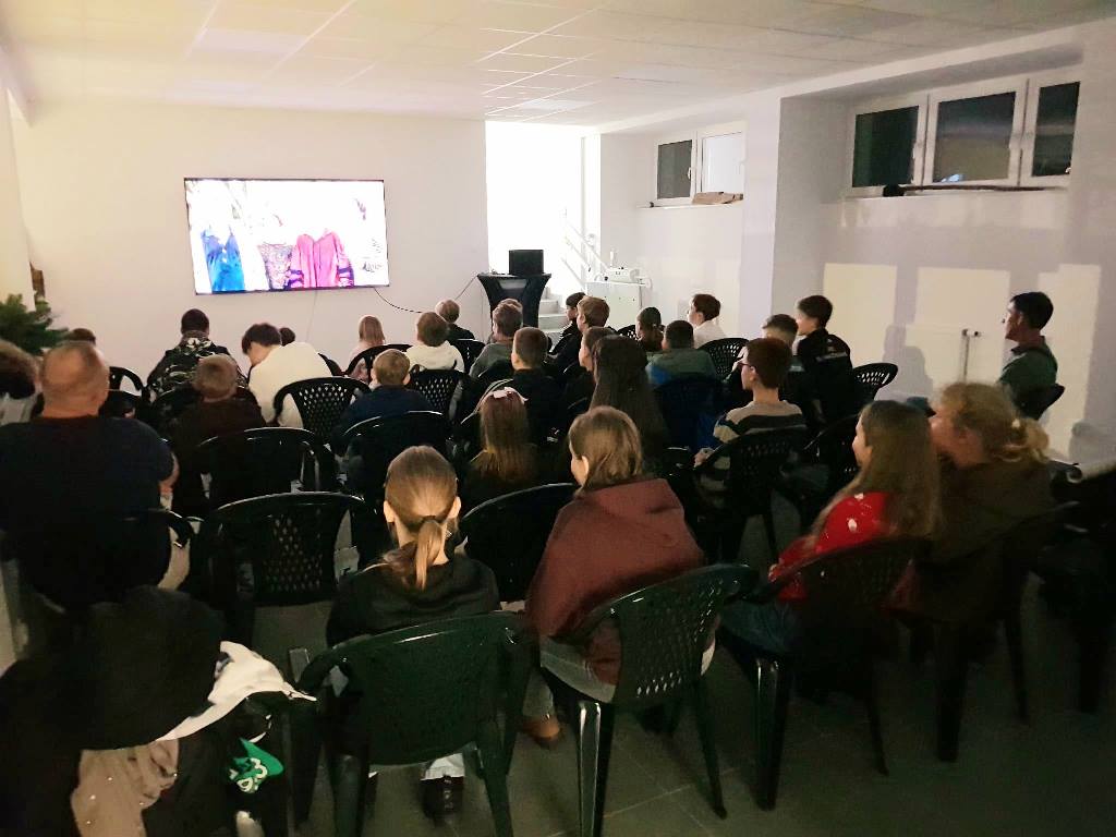 Po wręczeniu podziękowań wszyscy obecni zasiedli do przygotowanego poczęstunku, po którym w sali widowiskowej obejrzeli film pt: „Boisko Szczęścia”.